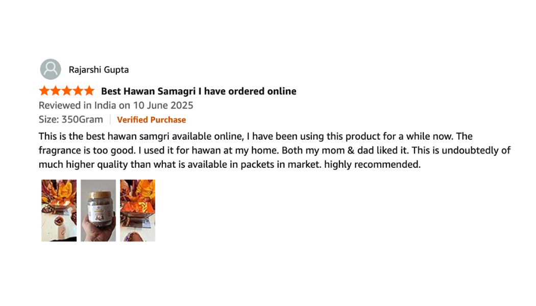 We support Gaushalas and use ingredients mentioned in the Vedas—nothing random, nothing artificial. Our samagri and pooja products follow ancient texts and proven combinations, ensuring purity that’s spiritual and scientific.